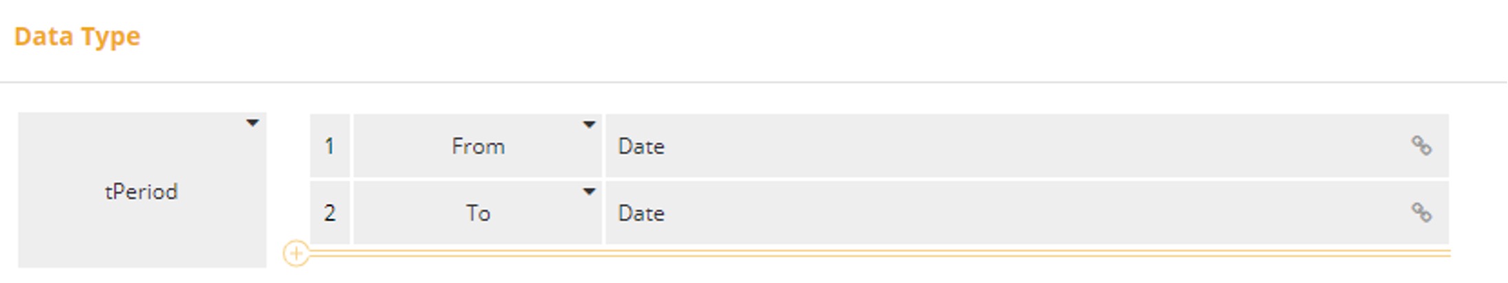 For our inputs, we first define a type tPeriod as follows: