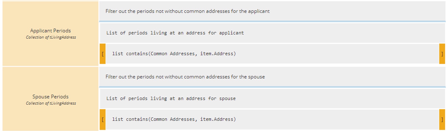 Using the collection of Common Addresses, we will now filter out the Applicant Periods and the Spouse Periods to only be those that were at a common address.